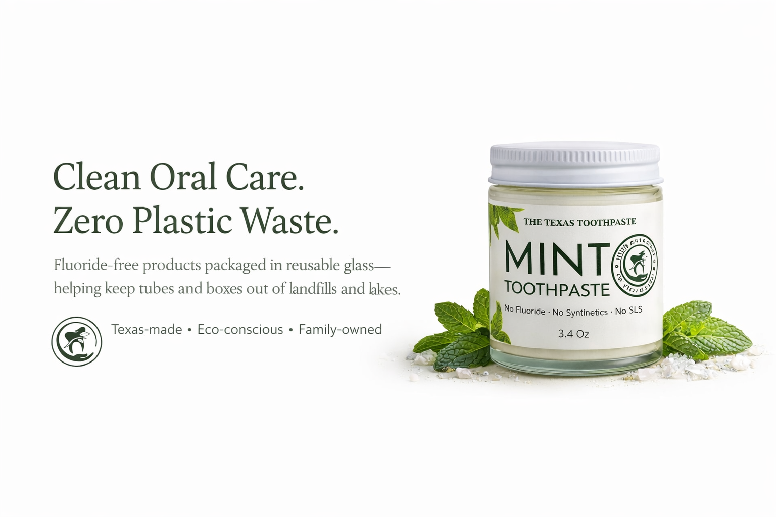 Clean oral care in reusable glass—better for your smile, lighter on the planet.